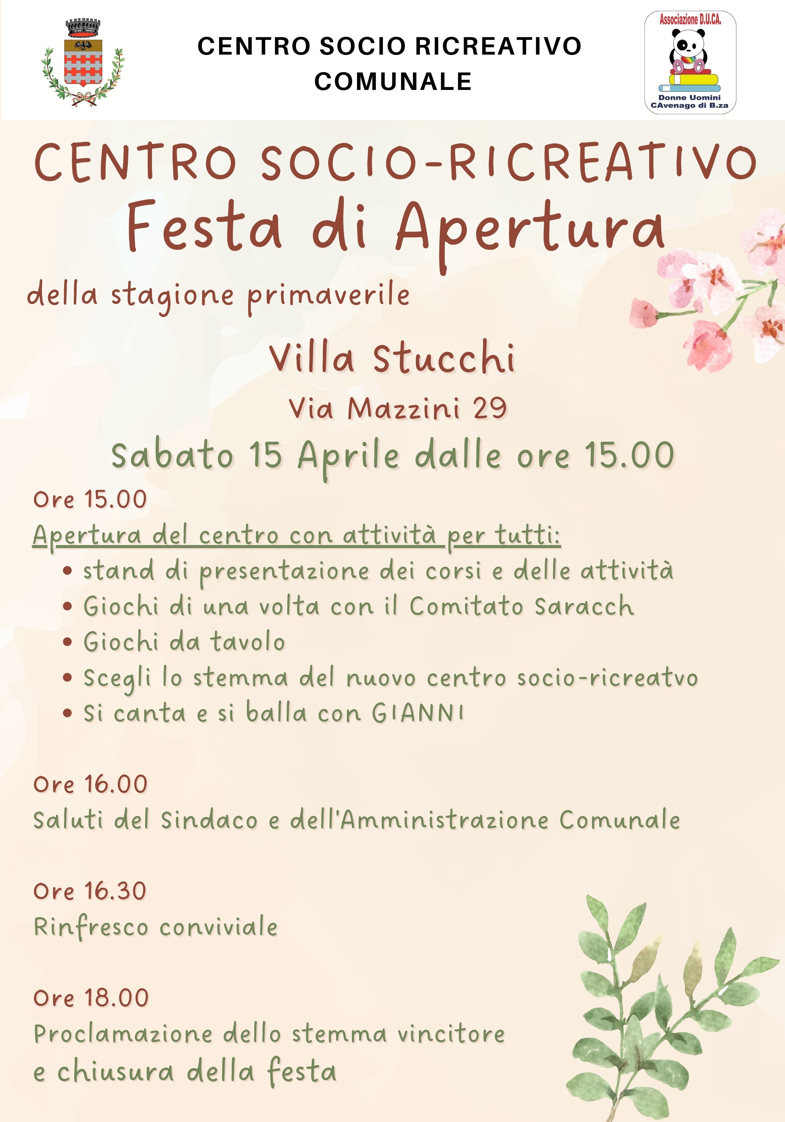 Festa di apertura della stagione primaverile al centro socio-ricreativo comunale nel parco di Villa Stucchi Sabato 15 Aprile dalle 15.00