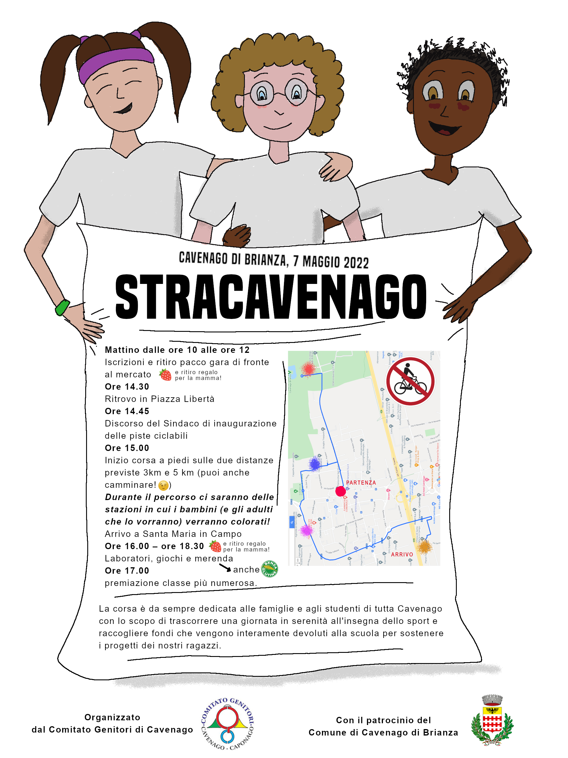 Sabato 7 Maggio Il programma Ore 14.30 ritrovo in Piazza Libertà Ore 14.45 Discorso del Sindaco di inaugurazione delle piste ciclabili Ore 15.00 partenza della STRACAVENAGO che percorrerà tutto il nuovo percorso ciclopedonale