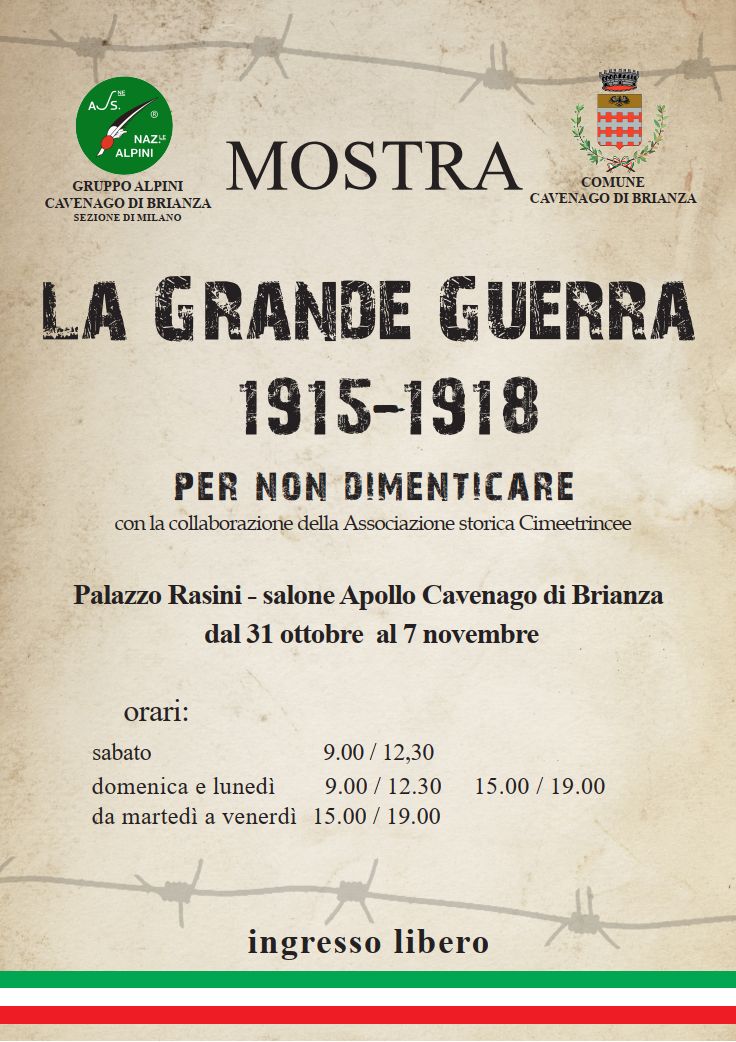 Gruppo alpini cavenago di brianza propone dal 31 ottobre al 7 novembre