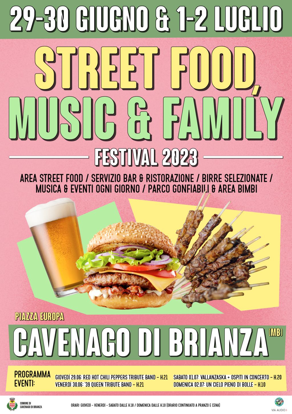L'Estate è arrivata e tornano gli appuntamenti enogastronomici nel cuore di Cavenago di Brianza (MB): il weekend del 29-30 Giugno & 1-2 Luglio 2023 in scena lo Street Food, Music & Family Festival, per quattro giornate di gusto e divertimento da non perdere nella centrale Piazza Europa!
