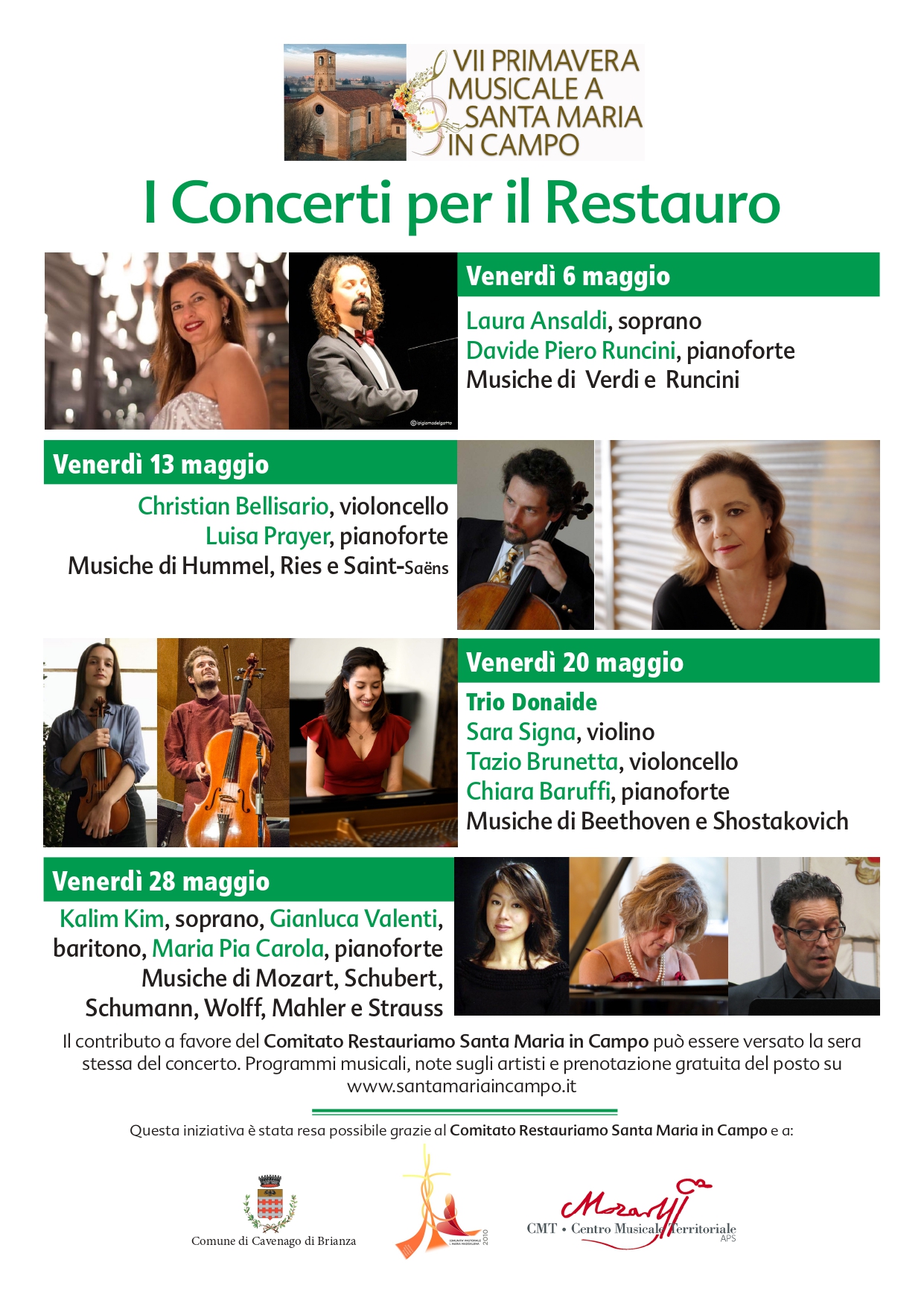 Il Comune di Cavenago di Brianza patrocina la tradizionale rassegna concertistica, giunta alla VII edizione, che si terrà nei venerdì di maggio, alle 20.30.